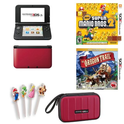 3DS XL Red Black with New Super Mario Bros. Oregon Trail Sam s Very well made.