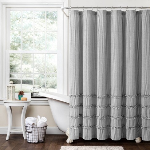 Stripe Woven Textured Yarn Dyed Recycled Cotton Shower Curtain Very well made.