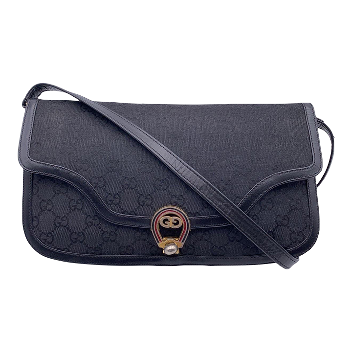 Gucci Vintage Black Monogram Canvas Convertible Shoulder Bag Very well made.