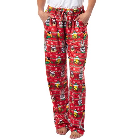 Looney Tunes Womens Christmas Character Santa Bugs Taz Daffy Pajama Pants 3X Red Very well made.