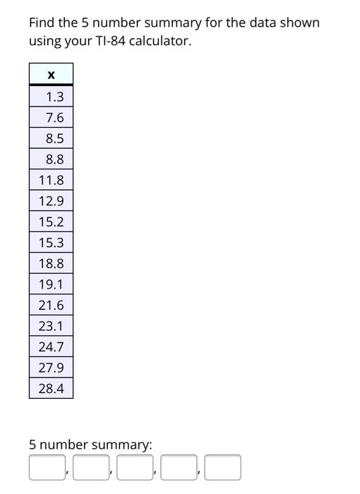 Solved Find the 5 number summary for the data shown using Chegg Very well made.