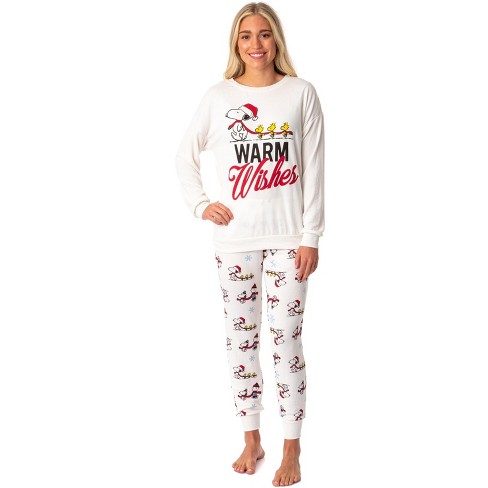Peanuts Womens Snoopy Woodstock Warm Wishes Christmas Pajama Set Small White Very well made.