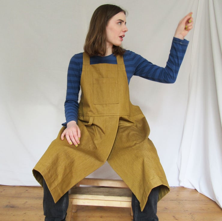 Golden Denim Crossback Pottery Apron with split front craft apron No4 5 Very well made.