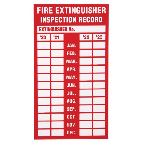 Fire Extinguisher Inspection Record Red On White Fire Label LFXG529 Very well made.
