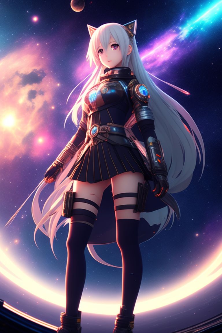 Anime girl drifting into space with stars on Craiyon Very well made.