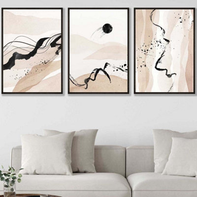 Set of 3 Beige Black Abstract Mountain Contours Wall Art Prints Very well made.