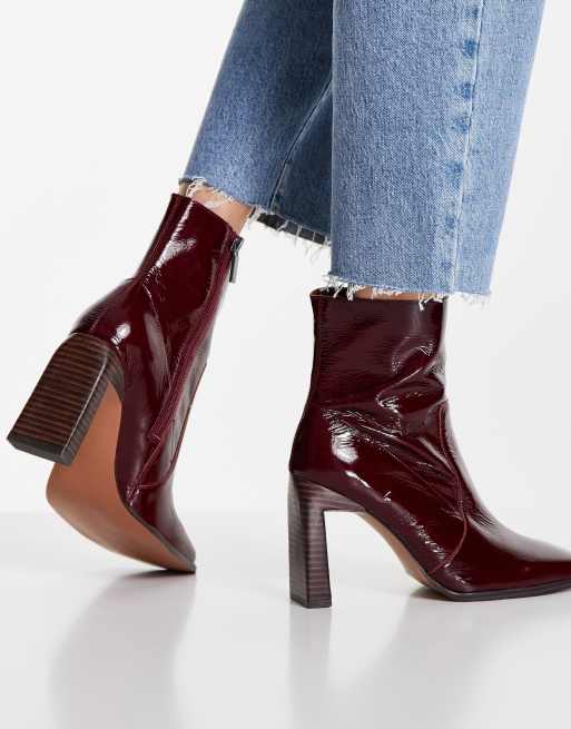 ASOS DESIGN Wide Fit Embrace leather high heeled square toe boots in burgundy Very well made.