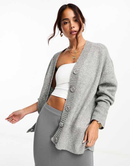 ASOS DESIGN boyfriend cardigan with button front in grey ASOS Very well made.