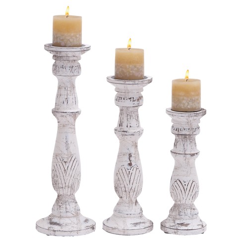 Set Of 3 Traditional Wooden Pillar Candle Holders White Olivia Very well made.