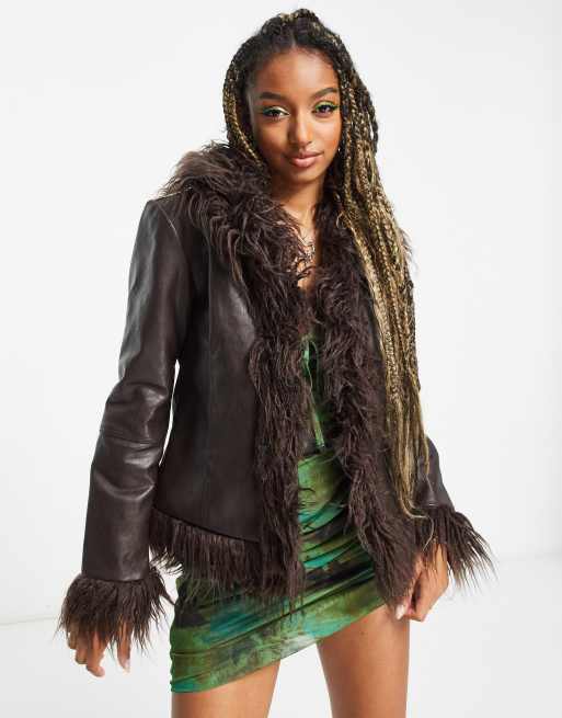 Stradivarius STR faux leather fur trim coat in brown ASOS Very well made.