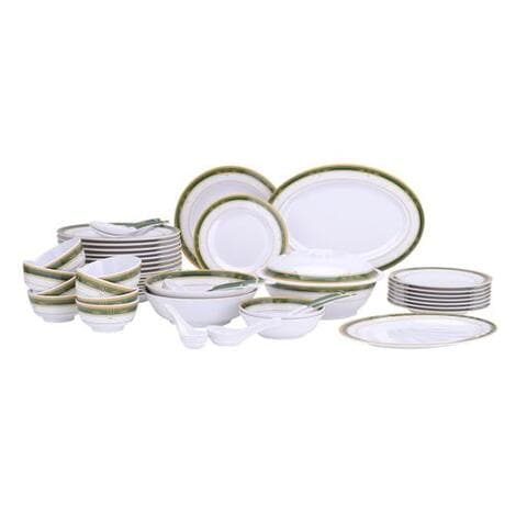54pcs Melamine Ware Dinner Set DC2107 Lightweight Chip Resistant Dishwasher Safe Elegant Design Superior Quality Plates Dishes Bowls Spoons Very well made.