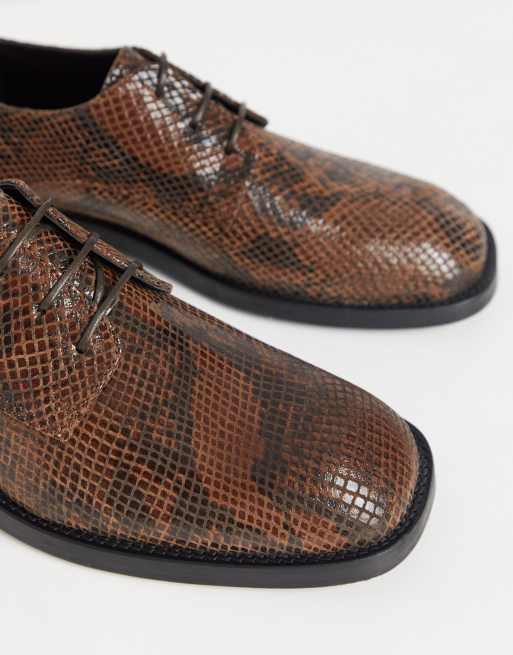 ASOS DESIGN lace up square toe shoes in snake skin leather ASOS Very well made.