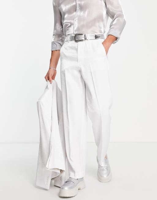 ASOS DESIGN wide suit trousers in white satin Very well made.