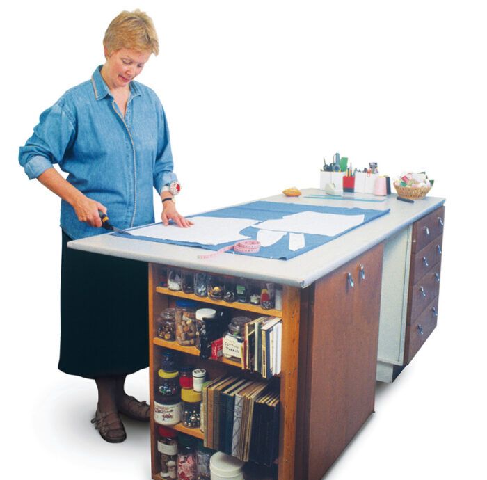 How to Make a DIY Cutting Table with Batting Roll Storage Very well made.