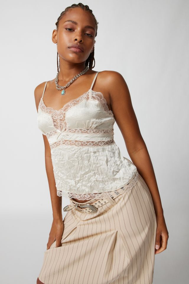 Light Before Dark Crushed Satin Lace Inset Cami Urban Outfitters Very well made.