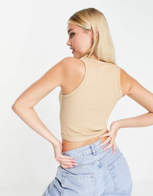 Basic Ribbed Tank Top Beige NA KD Very well made.