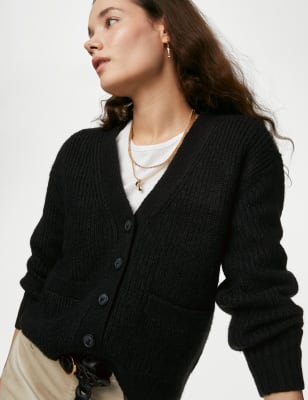 Knitted V Neck Relaxed Cardigan with Wool M S ID Very well made.