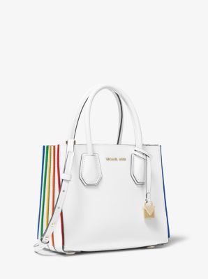 MICHAEL KORS MANHATTAN OPTIC WHITE WITH RAINBOW ACCENTS GRAB HANDLE TOTE Very well made.