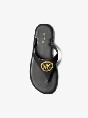 Michael Kors Flip Flops MK Jet Set PVC Logo Signature Thong Sandals Gold Black Very well made.