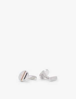 BOSS Logo stripe enamel and brass cufflinks Selfridges Very well made.