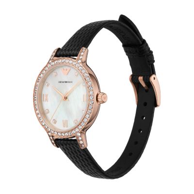 Emporio Armani Women s Two Hand Black Leather Watch Very well made.