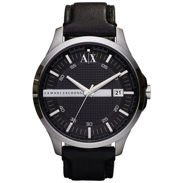 Buy Armani Exchange Men s Black Leather Strap Watch Men s watches Argos Very well made.