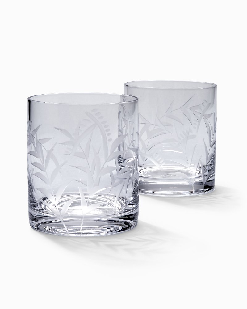 Tommy Bahama Etched Palm Old Fashioned Glasses Set of 2 Hand Very well made.