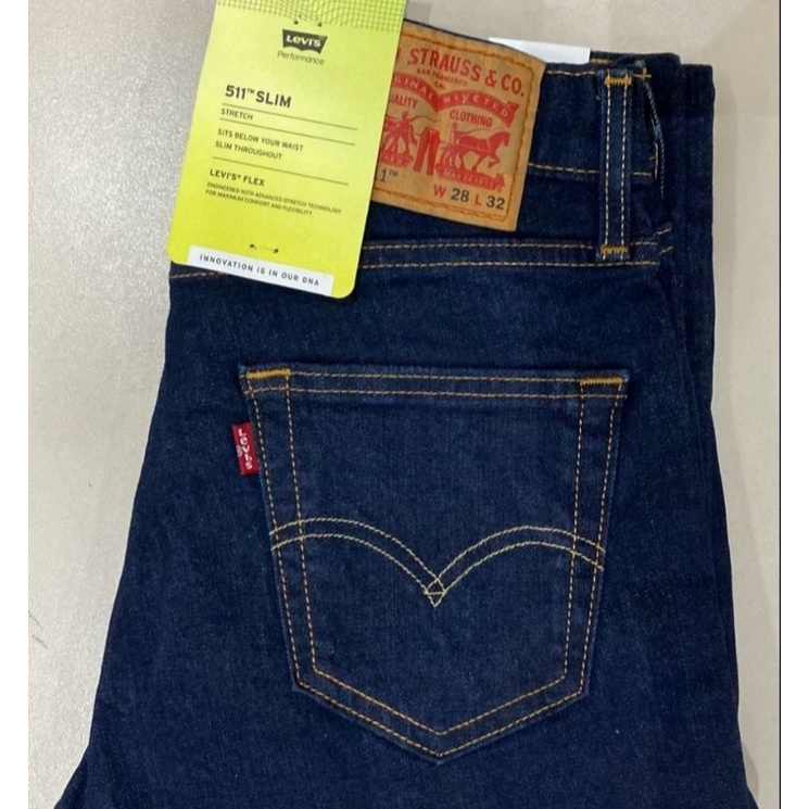Levi s 511 Slim Fit Stretch Original Jeans Genuine Denim DARK Mid Navy Blue Very well made.