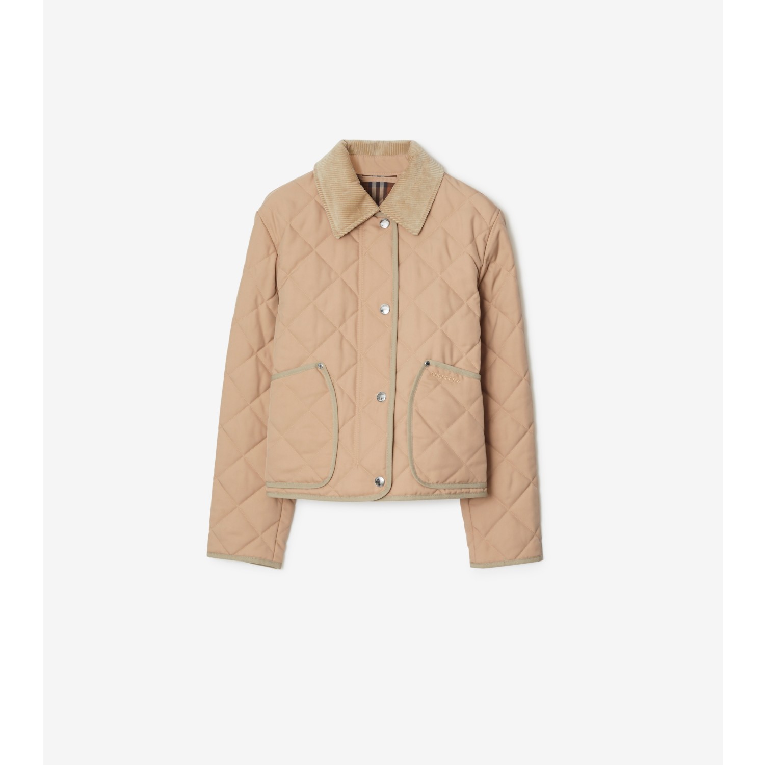 Cropped Quilted Thermoregulated Barn Jacket in Soft fawn Women Nylon Burberry Official Very well made.