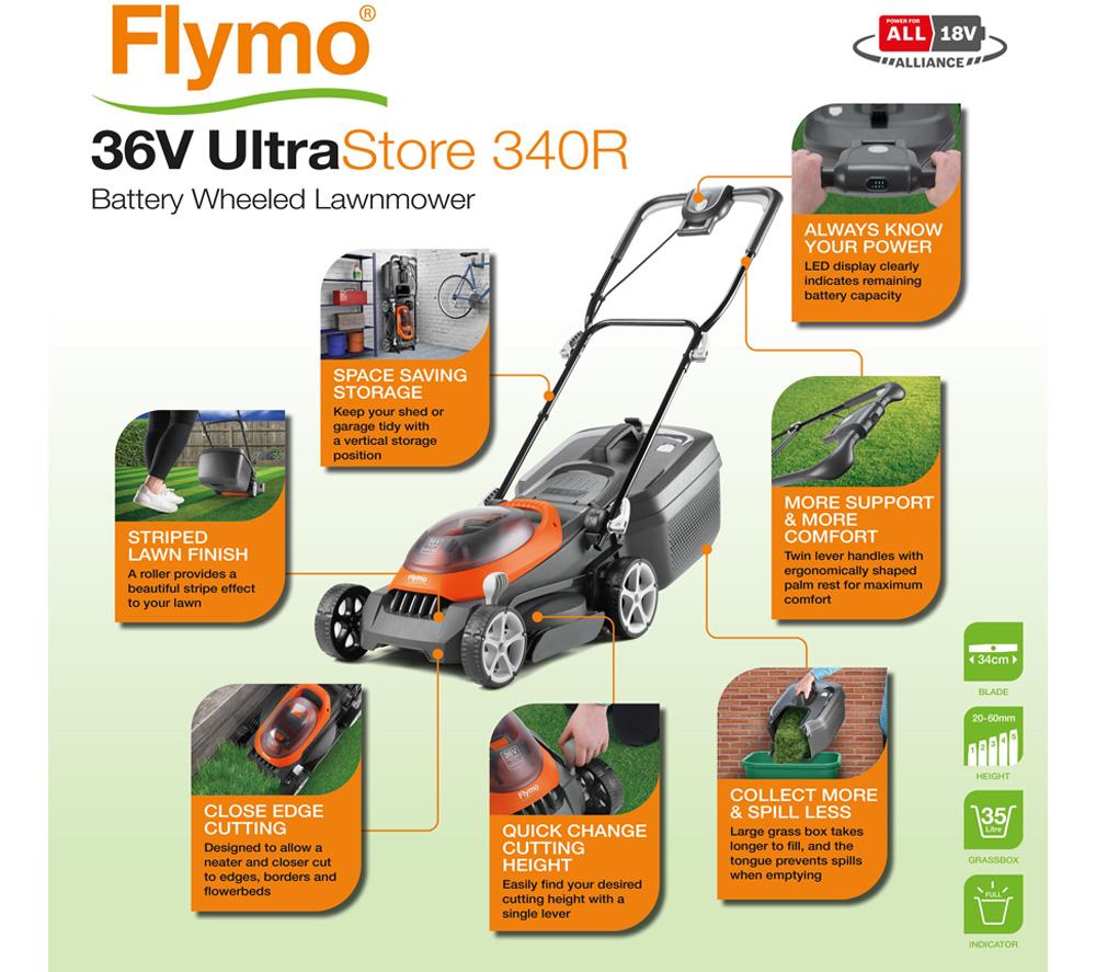 Flymo 36V EasiStore 340R Cordless Lawnmower Kit Power For All Very well made.