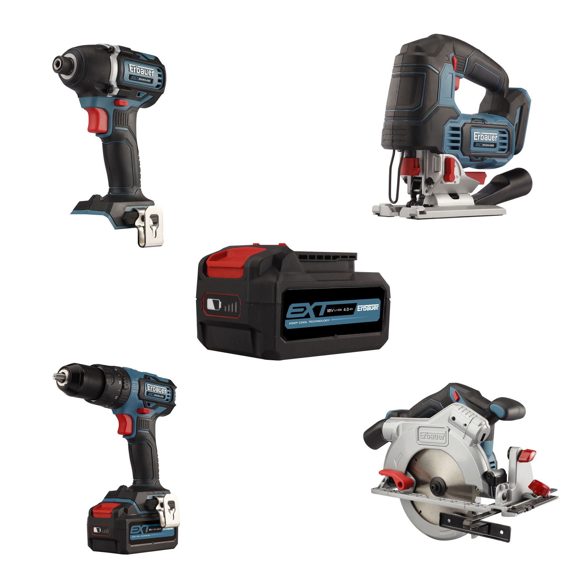 Erbauer EXT 18V 4Ah Li ion Cordless 4 piece Power tool kit Very well made.