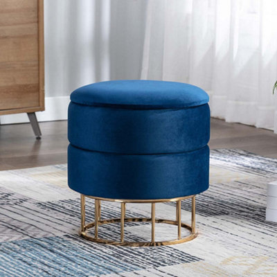 Velvet Ottoman with Top Pillow Seat Footstool Metal Legs Blue Evja Very well made.