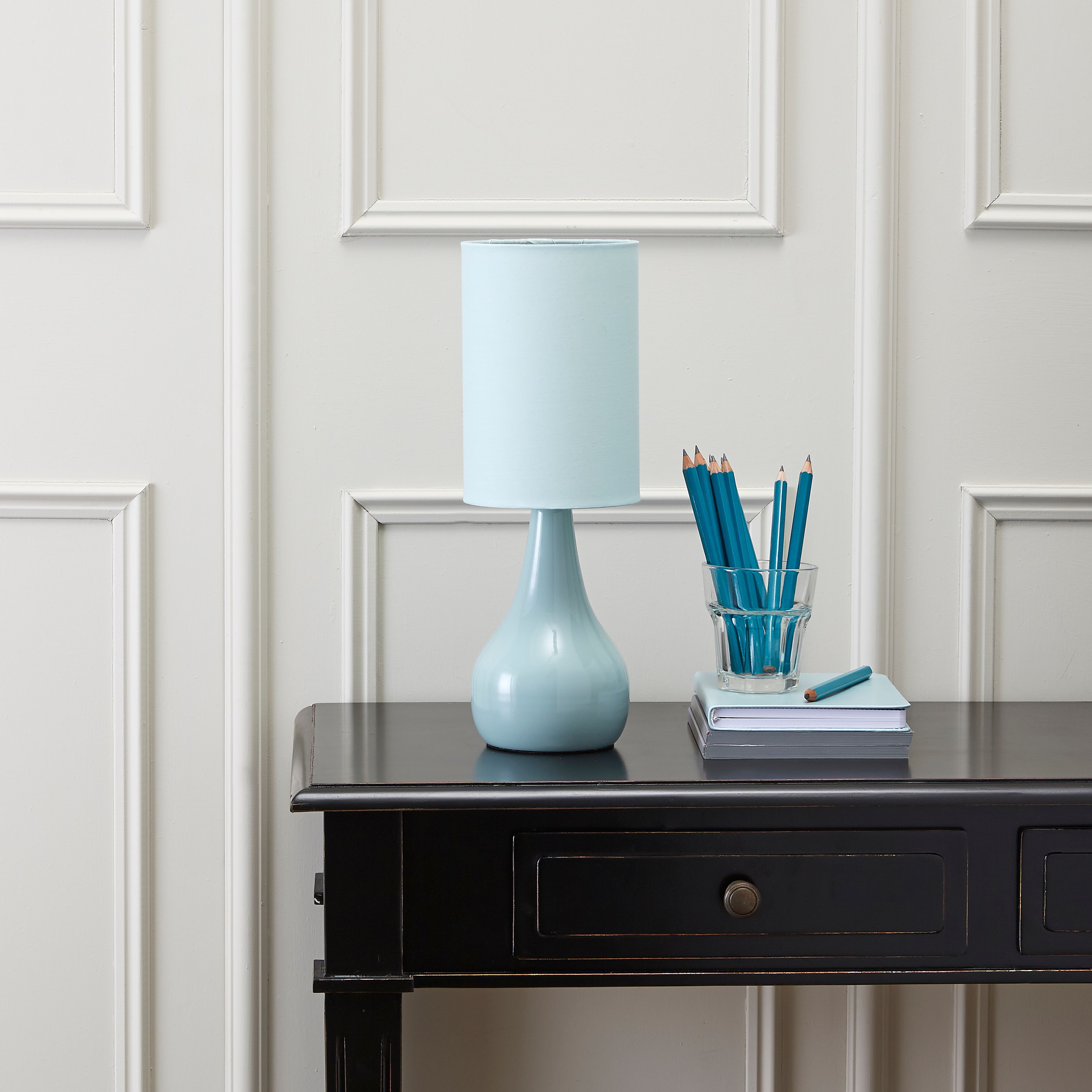 Colours Ariel Matt Duck egg Eco halogen Table lamp DIY at B Q Very well made.
