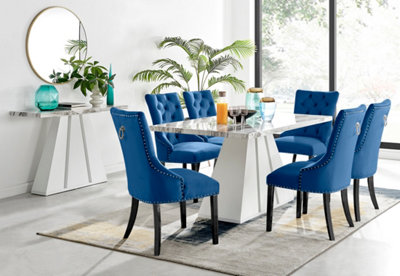 Athens White Marble Dining Table 6 Blue Belgravia Black Leg Very well made.