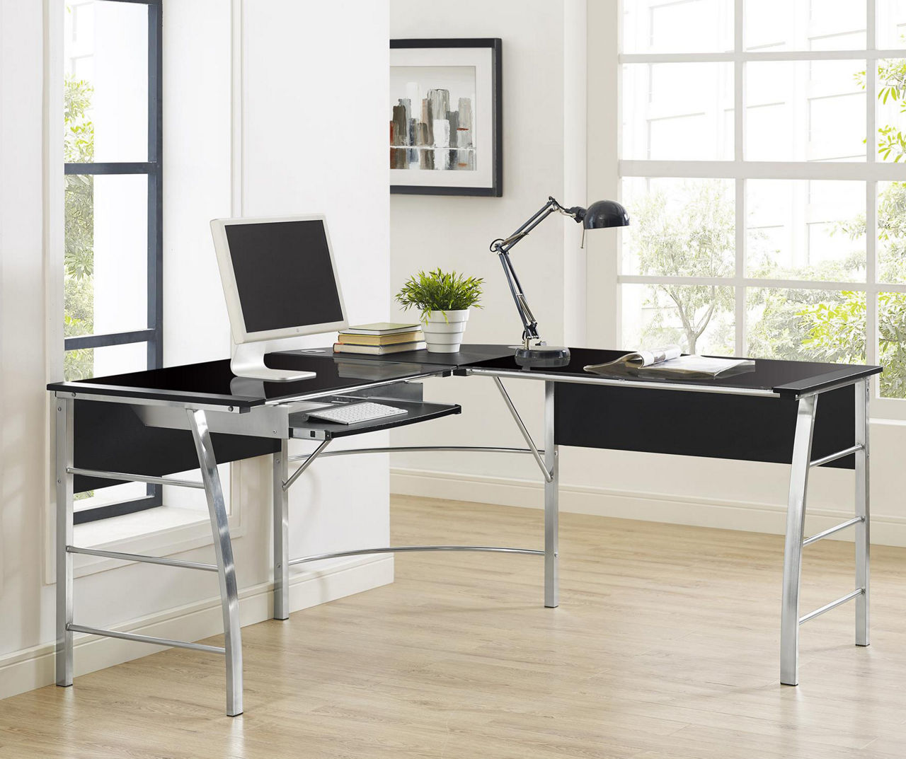 Ameriwood Black Silver Glass Top L Shaped Corner Desk Big Lots Very well made.