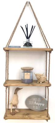 Rustic Wooden Hanging Rope Shelf Handmade Solid Natural Wood Floating Shelves Very well made.