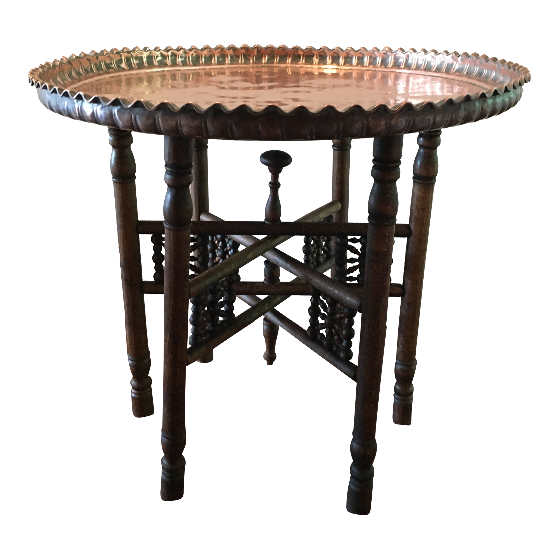 Antique Moorish Ball and Stick Folding Round Mamluk Copper Tray or Drinks Table Very well made.