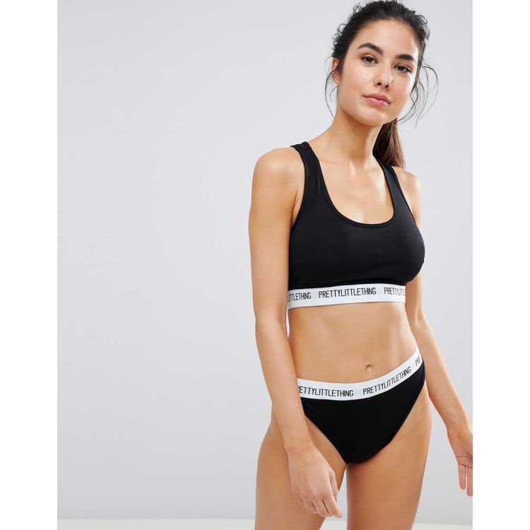PrettyLittleThing Black Sports Bra Knicker Lingerie Set ASOS Very well made.
