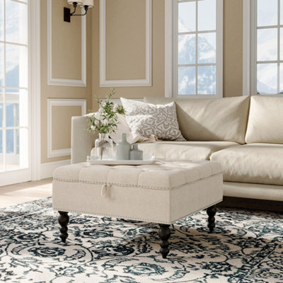 Large Beige Fabric Footstool with Storage Payton Furniture123 Very well made.