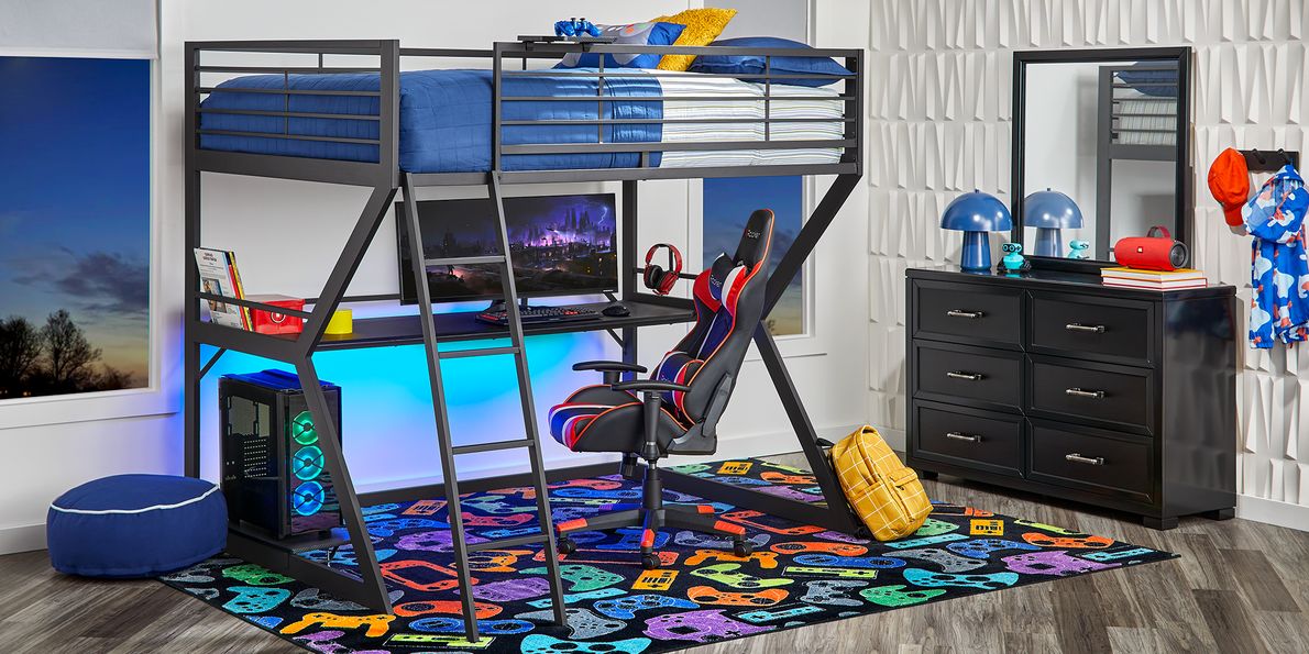 Kids Carbon Optix Black Full Gaming Loft Bed with LED Lights and Very well made.