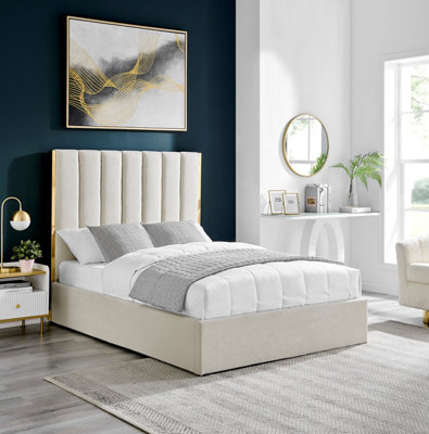 Chloe Beige King Size 5FT Fabric With Gold Trim And Ottoman Very well made.