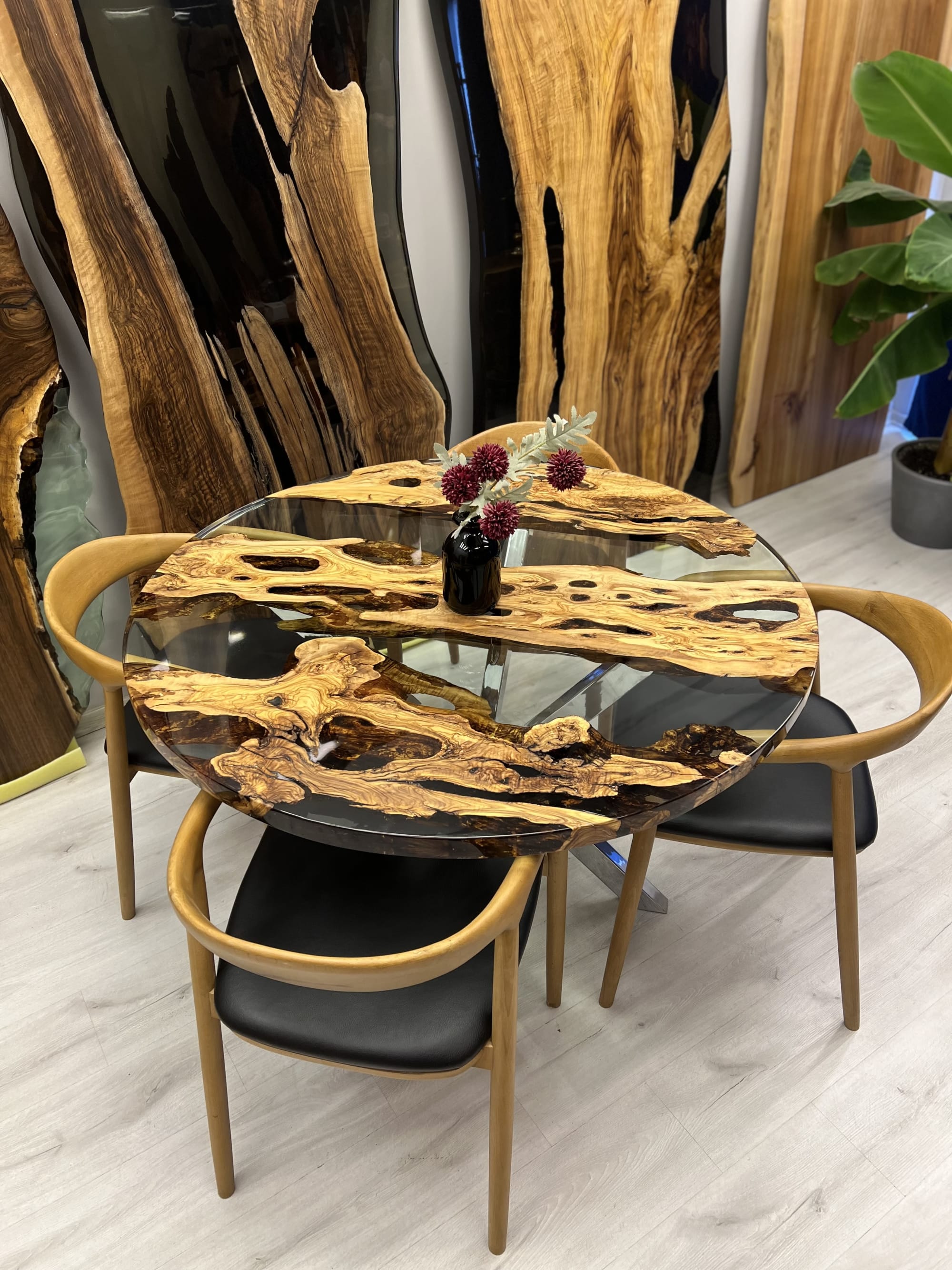 Custom Round Epoxy Table Made of Walnut UV Resin Table With Steel Very well made.