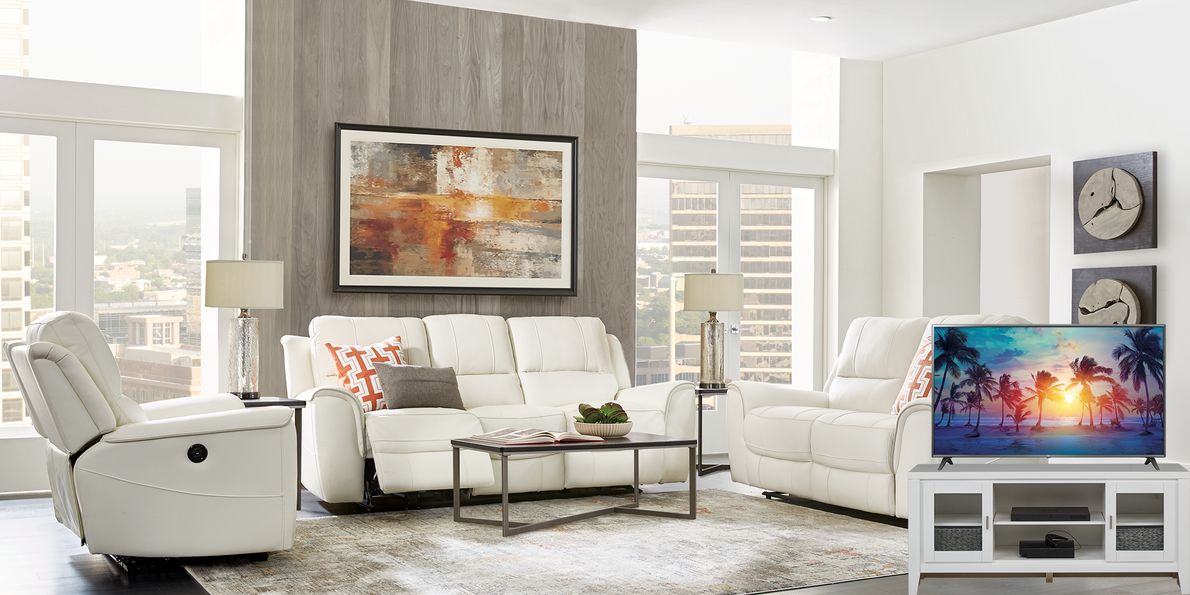 Lanzo Off White Leather 6 Pc Living Room with Reclining Sofa Plus 70 in. TV Very well made.