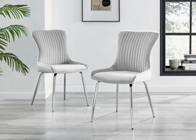 Set Of 2 Harlow Grey Velvet Dining Chairs With Chrome Legs Very well made.