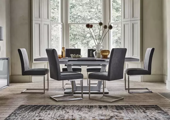 Florence Extending Dining Table 6 Kensington Chairs Black Marble Effect Silver Crushed Velvet Black Solid Hardwood 120 160cm Very well made.