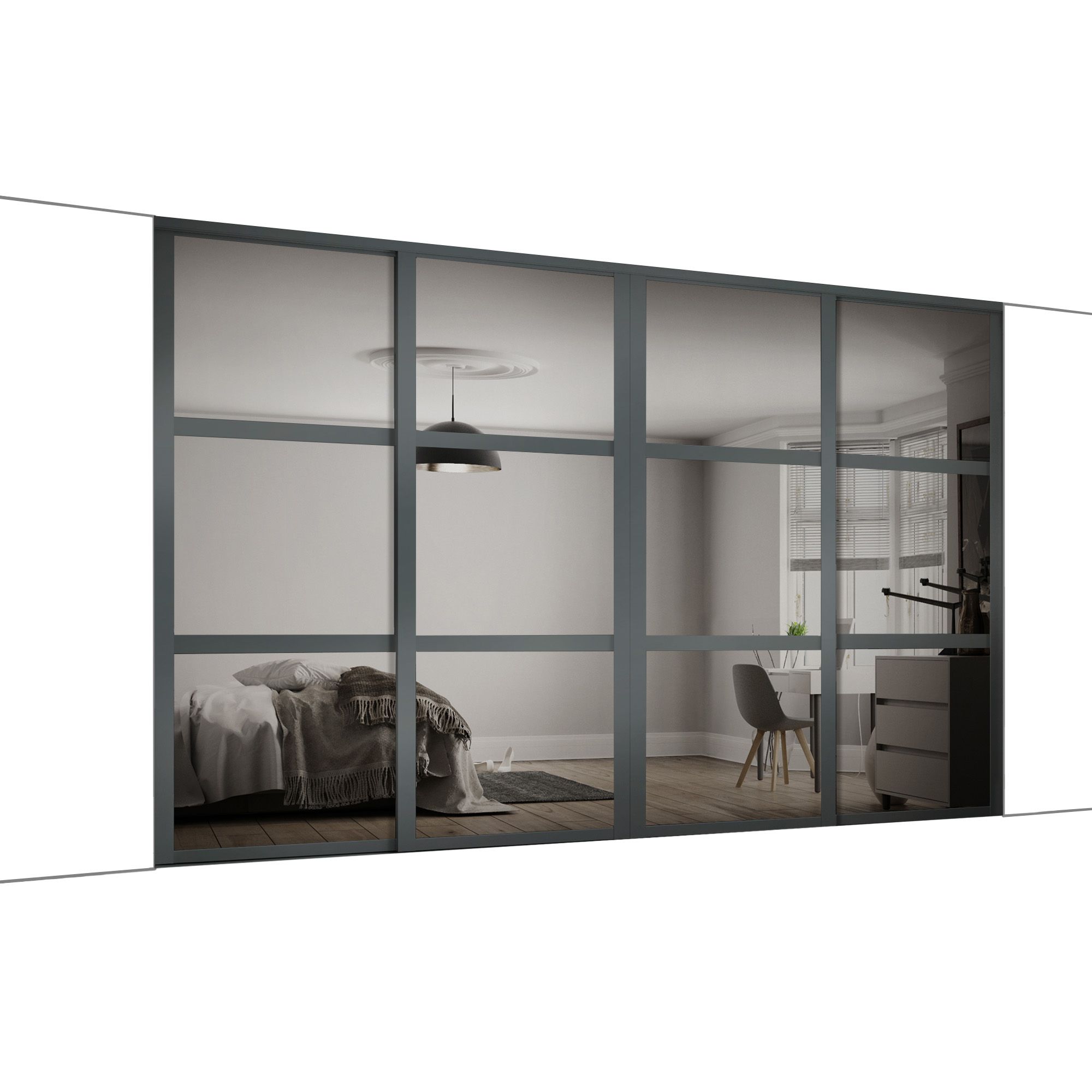 Panel Shaker Mirrored Graphite 4 door Sliding Wardrobe Door kit H Very well made.