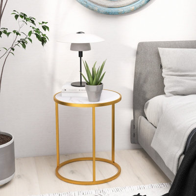 Billie 24 Inch Tall Genuine Marble Top White and Gold Accent End Very well made.