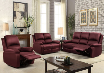 Comfy Living Reclining Faux Leather Sofa Set In Red 3 Piece 2 Piece Armchair Very well made.