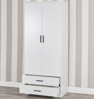 URBNLIVING 180cm Tall 2 Door Wardrobe With 2 Drawers White Carcass and White Drawers Bedroom Storage Hanging Bar Clothes Very well made.