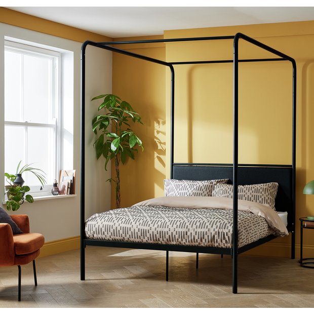 SlumberWorx ASHWELL MODERN FOUR 4 POSTER BLACK METAL BED FRAME SINGLE SMALL DOUBLE DOUBLE KING SIZE WITH MATTRESS OPTIONS No Mattress Single Very well made.